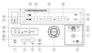 Trong quá trình kiểm tra, dùng để ngắt thử nghiệm. Khi DUT (thiết bị dưới thử nghiệm) bị lỗi, đèn FAIL (10) sáng, nhấn STOP để tắt cảnh báo và chuyển sang trạng thái chờ kiểm tra tiếp theo. -